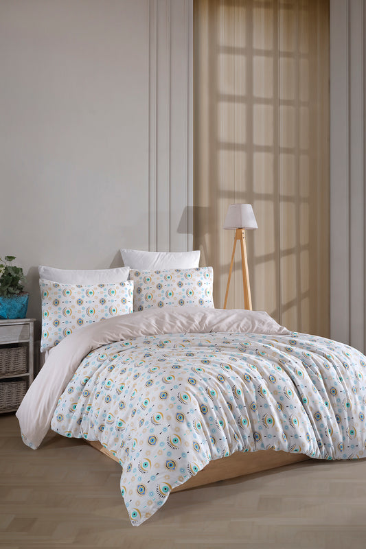 Çift Kişilik Lastikli Çarşaflı Nevresim Takımı | Göz Desen