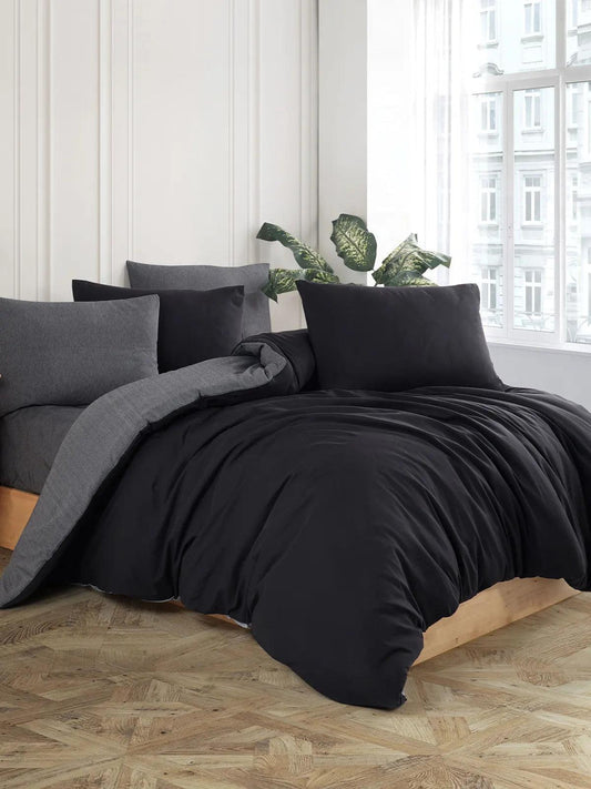 Siyah Kalpli Nevresim Takımı | Lastikli Çarşaflı | Tam Takım