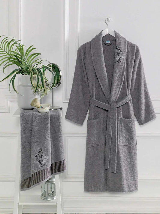 Kapüşonlu Pamuklu Bornoz Antrasit