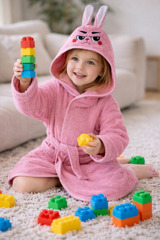 Pembe Tavşan Çocuk Bornozu