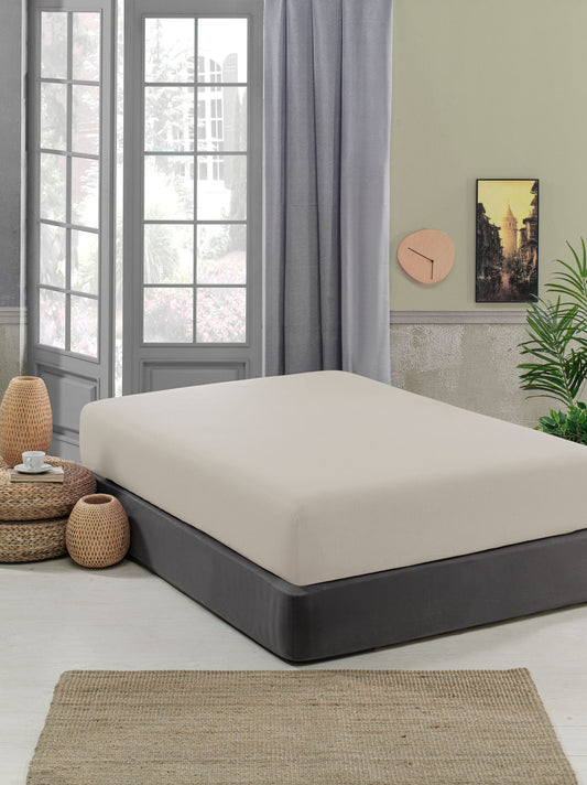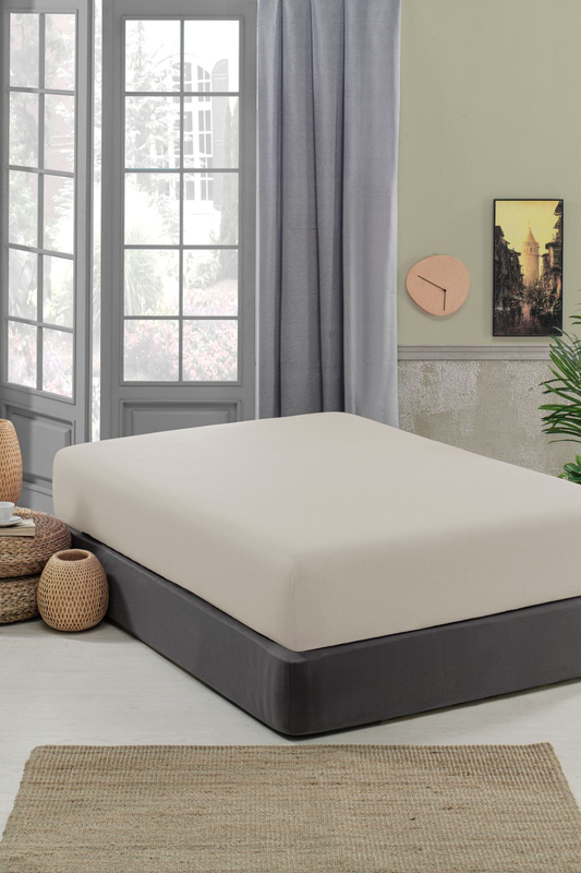 Pamuklu Lastikli Çarşaf 160x200 cm Çift Kişilik Bej | 2 Al 1 Öde