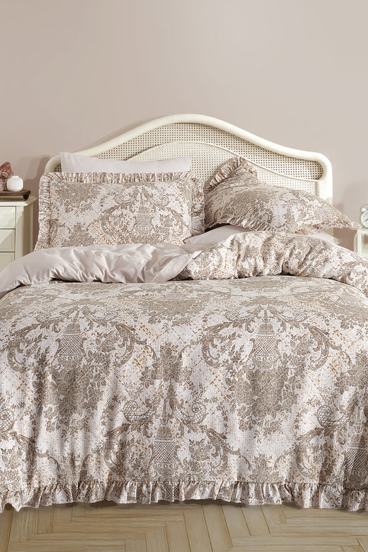 Çift Kişilik Lüx Fırfırlı Nevresim Seti | Nevresim Ve Yastık Kılıfı | Fırfırlı Bej Desen