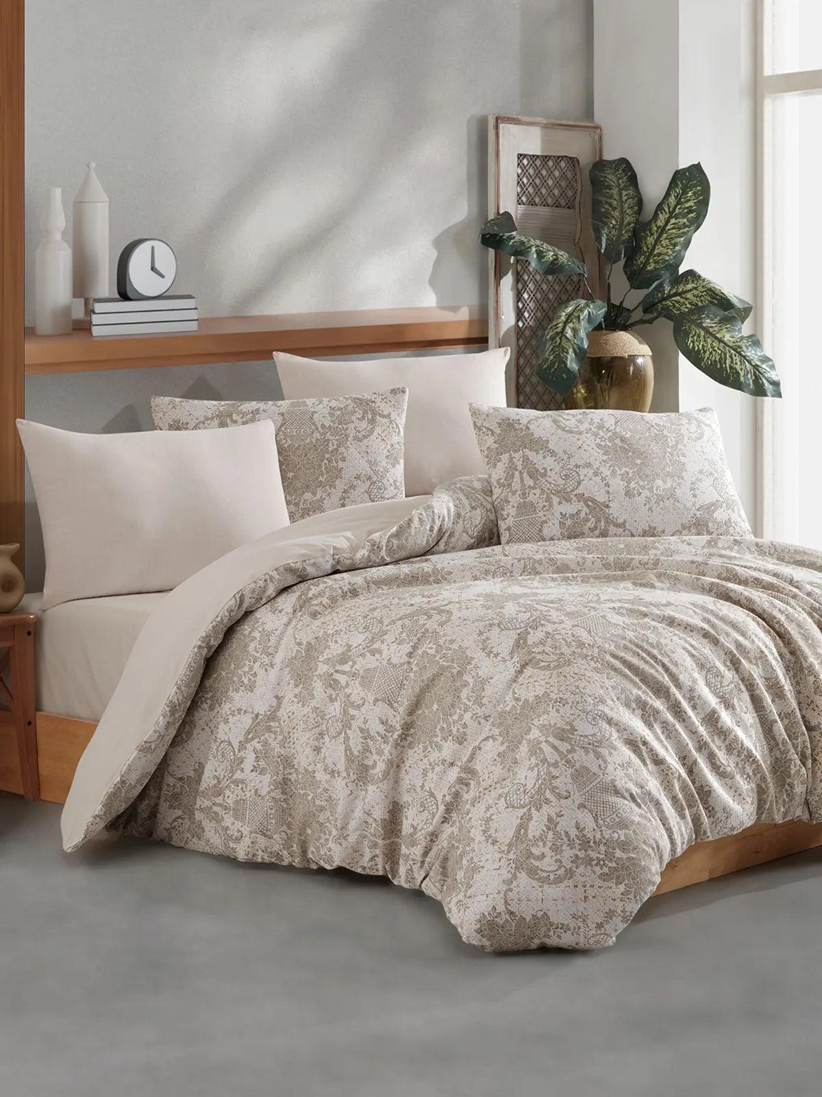 Çift Kişilik Bej Desenli Nevresim Takımı