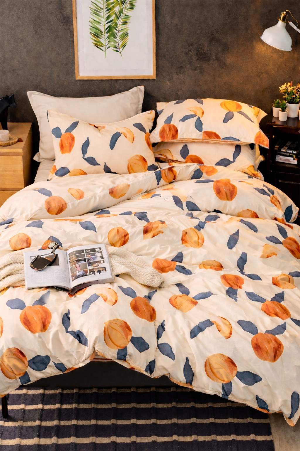 Çarşaf (1 Adet): 180 x 200 cm – Yatağınızı tam sararak pürüzsüz bir zemin oluşturur. Dikkati nevresim desenine çeken desensiz, düz krem rengiyle zarif bir denge sağlar.