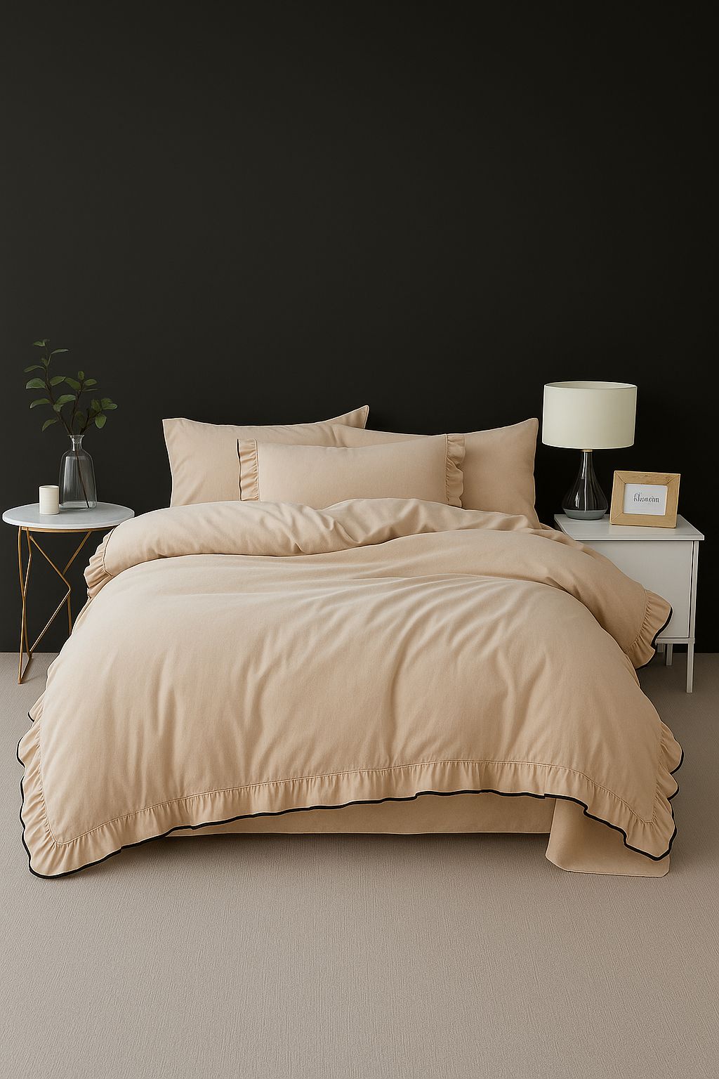 Çift Kişilik Lüx Fırfırlı Nevresim Seti | Nevresim Ve Yastık Kılıfı | Full Bej