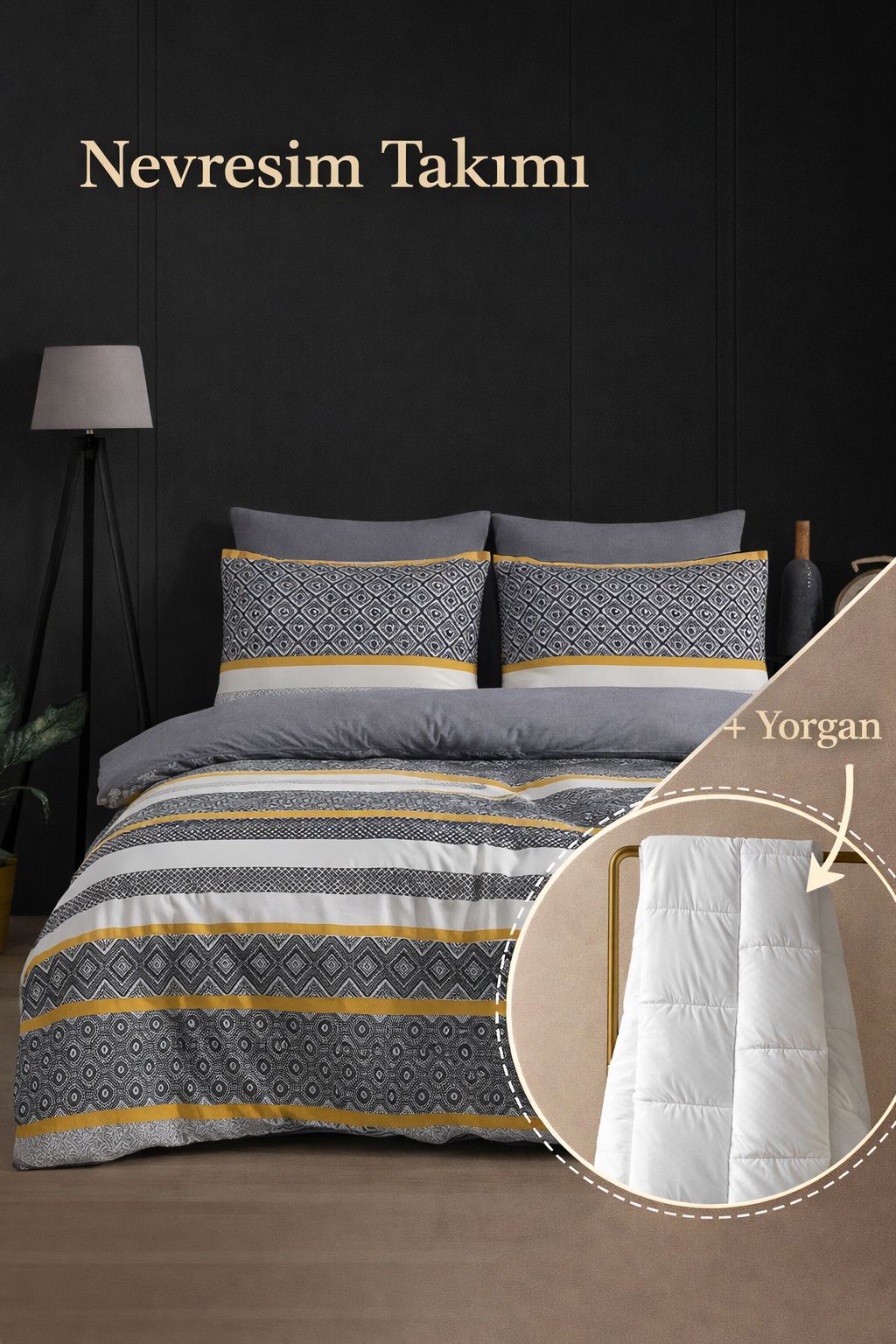Çift Kişilik Nevresim Takımı Ve Yorgan Seti | Sarı Detay Yorgan Seti