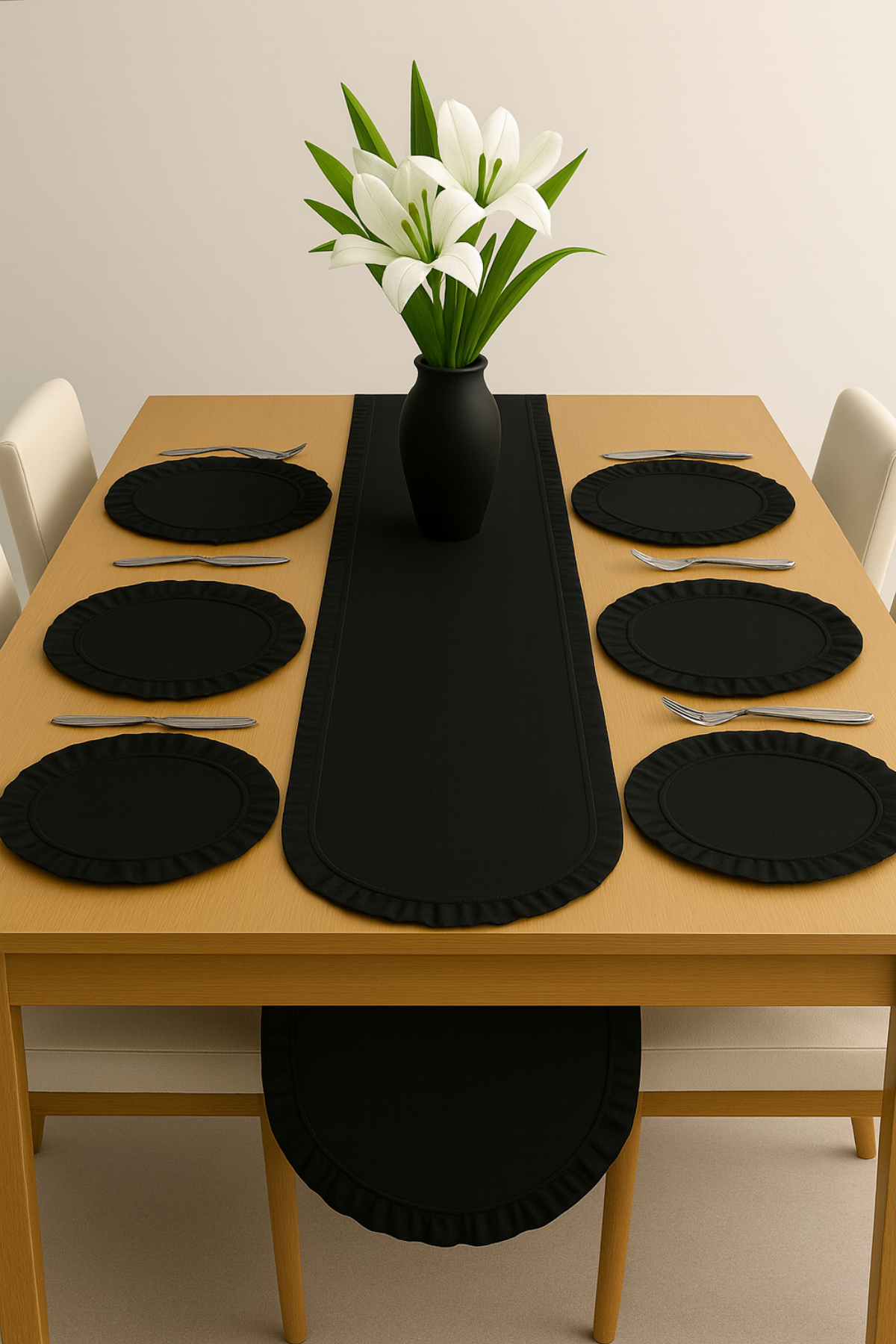 Fırfırlı Supla Ve Runner Takımı - Masa Örtüsü Takımı 7 Parça